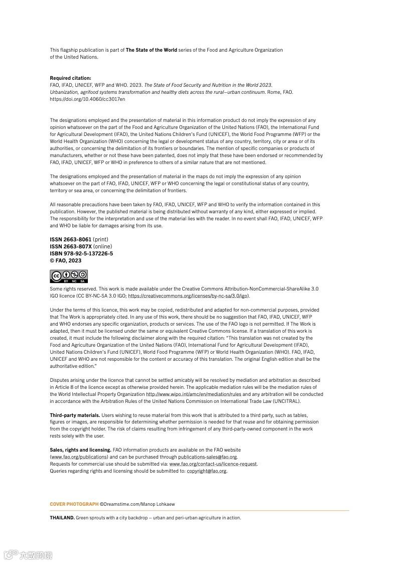 联合国粮农组织发布了“2023年世界粮食安全和营养报告”。对2022年全球粮食安全和营养状况的评估反映了世界仍在从一场全球大流行病中恢复过来。经济从疫情中复苏的令人鼓舞的迹象以及贫困和饥饿减少的预期因粮食和能源价格上涨而受到影响。