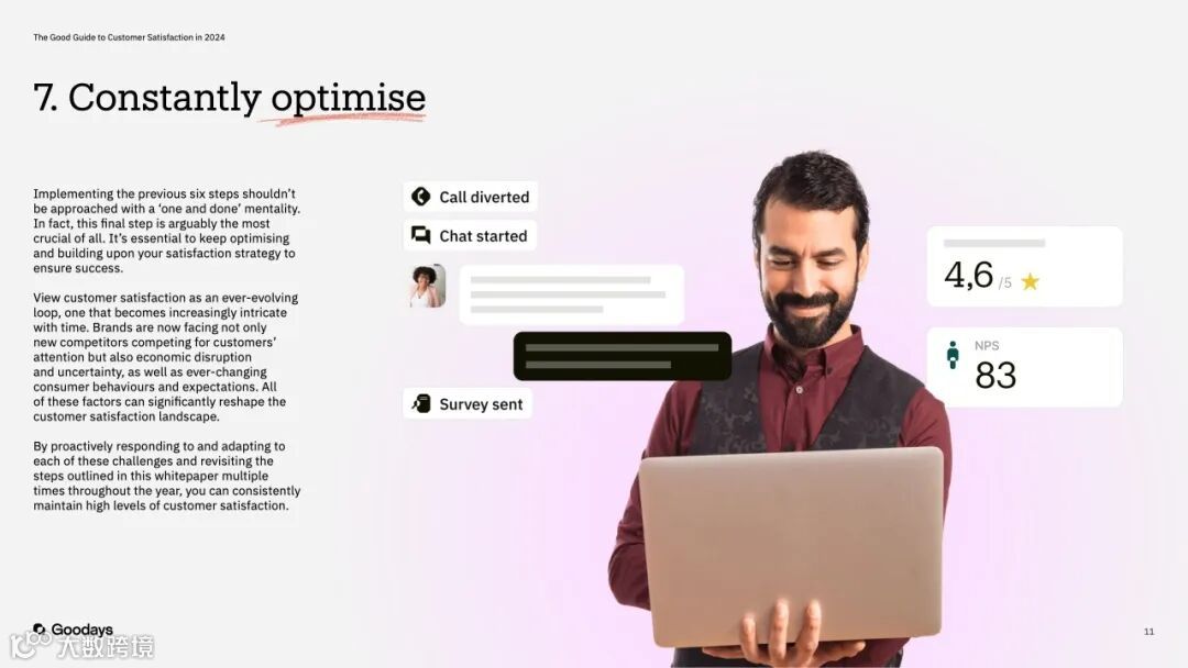 执行前六个步骤不应该抱着“一劳永逸”的心态。最后一步可以说是最关键的一步。保持乐观和建立满意度策略是确保成功的关键。