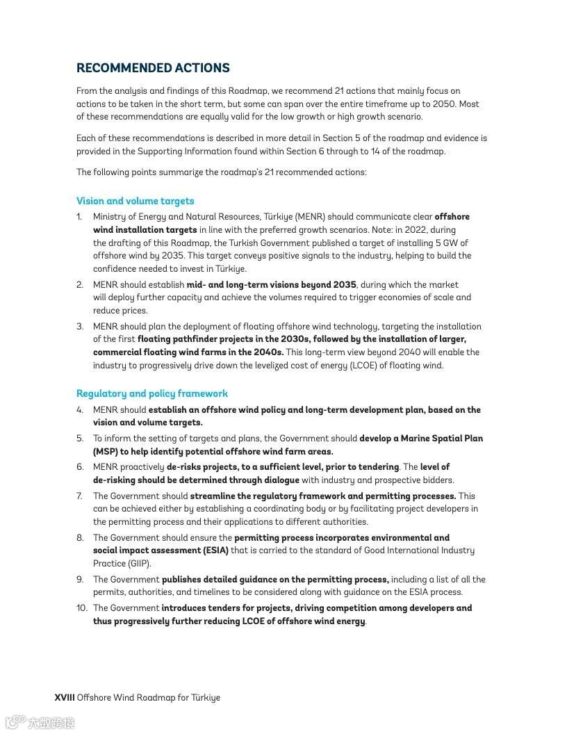 世界银行集团发布了“海上风电开发计划路线图”,对土耳其的海上风电开发潜力进行了战略分析,考虑了不同假设增长情景下的机遇与挑战。其旨在为土耳其政府制定政策、法规、流程和基础设施提供依据,以推动这一新兴行业的成功发展。