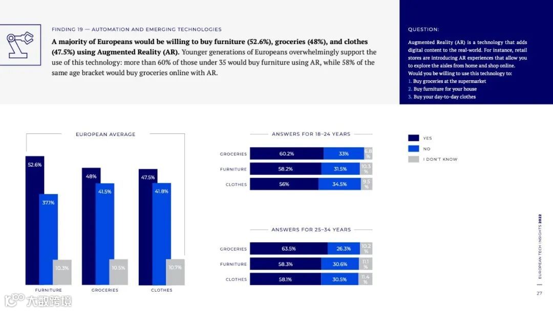导读:​尽管如此,调查显示,大多数欧洲公民仍然相信技术可以加强我们的民主,相信技术改善了他们对民主进程的参与,并支持他们的政府使用技术。因此,技术给公民带来了热情和机遇,但也给欧洲的生活方式带来了挑战。