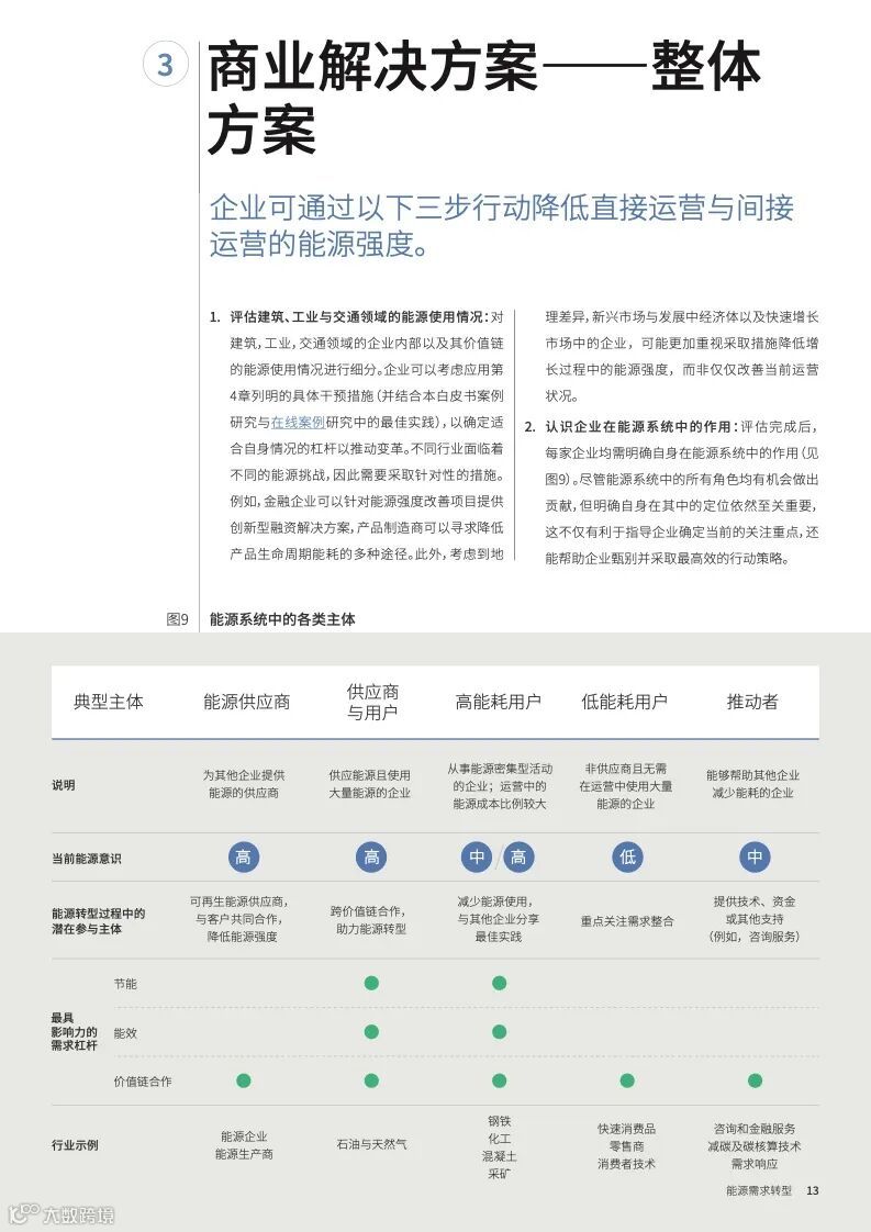 该报告强调,企业可采取的应对能源需求的实际行动可以通过降低建筑、工业和运输领域的能源强度来推动。这包括节能措施、使用人工智能优化生产线设计、通过建筑物改造提高能源效率以及价值链合作,如通过产业集群回收废能源。