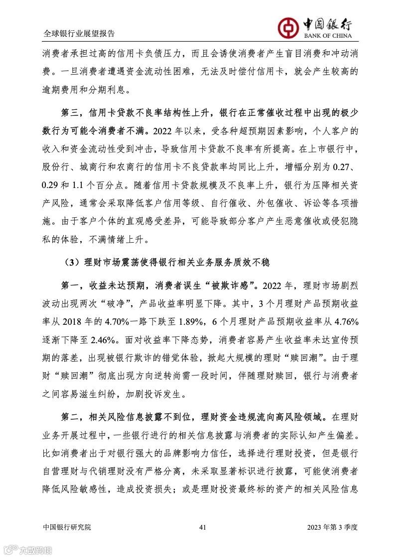 当前,全球银行业面临较大风险挑战,本期报告围绕 欧美银行流动性风险、疫情以来中国银行业资产质量、 按揭贷款早偿风险、消费者保护问题等进行专题分析。