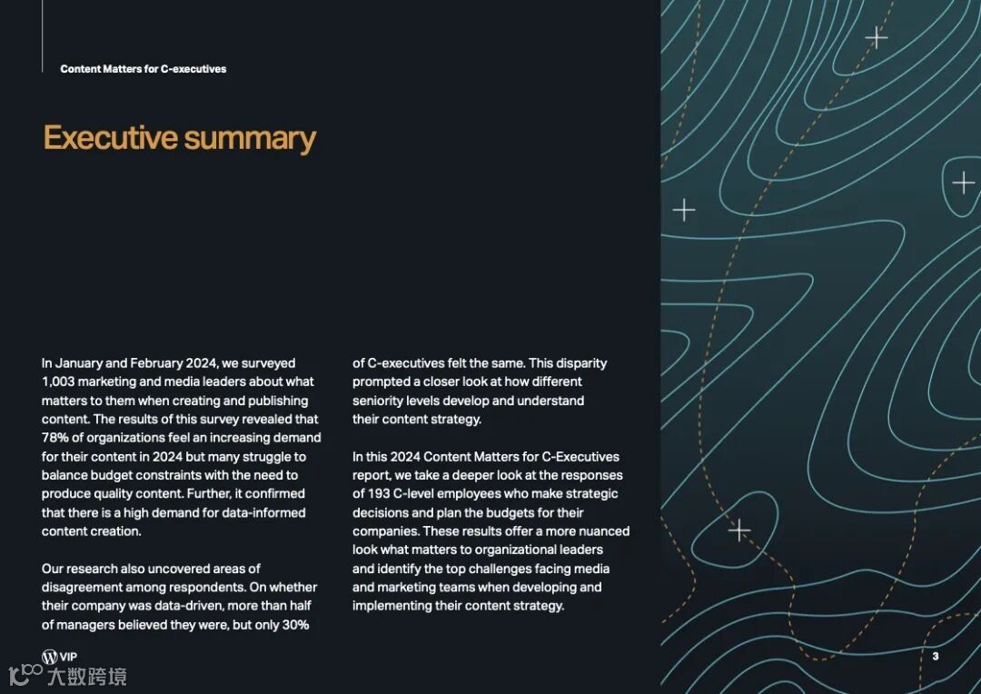 在2024年1月和2月,WordPress VIP调查了1003名营销和媒体领导者,了解他们在创作和发布内容时最看重的是什么。调查结果显示,78%的组织认为2024年对其内容的需求将会增加,但许多组织都在努力平衡预算限制和制作高质量内容的需求。此外,它证实了对数据知情内容创作的高需求。