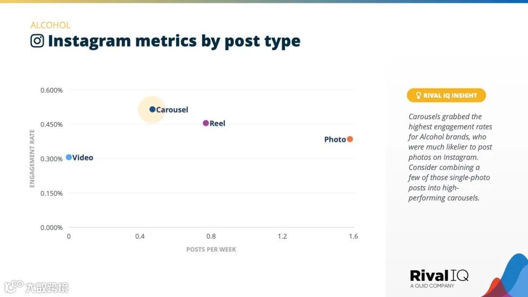今年,除了TikTok之外,酒类品牌在其他地方的参与度都高于平均值,因为年龄限制的内容继续压低了它们的参与度。在Facebook上排名第四,在Twitter上排名第三。