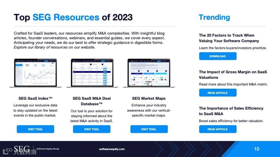 在经济逆风中,软件和SaaS公司转向运营效率。对于美国经济来说,许多公司在这方面取得了成功。SEG SaaS指数TM同比增长34%,超过了标准普尔500指数和道琼斯指数,在主要指数中仅次于纳斯达克指数(增长43%)。