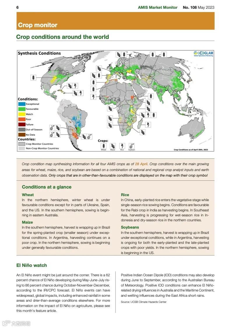 导读:2023年5月20国集团农业市场信息监测与展望月报