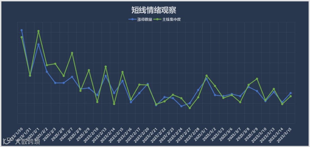 一带一路、中字头等方向走强,数字经济、半导体走弱,近期的行情一直在这几个热点中轮动。