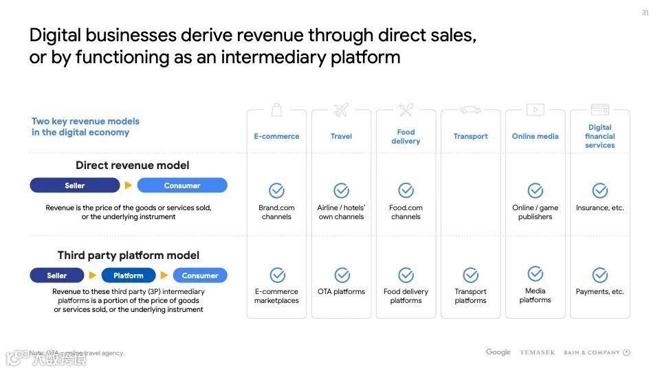 为了实现盈利目标,数字企业已将重点转向货币化。2023年,东南亚数字经济将带来1000亿美元的收入,自2021年以来的复合年增长率为27%,是总商品价值(GMV)增长率的1.7倍。电子商务、旅游、交通和媒体贡献了700亿美元的收入。2023年,GMV预计仍将增长11%,达到2180亿美元。