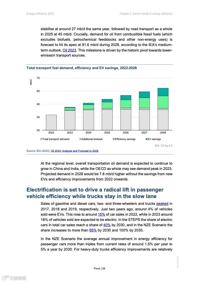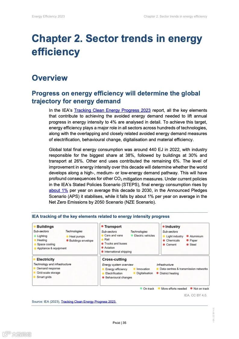 全球目标是到2030年将能效提高一倍,从2022年的每年2%提高到4%,随着这一目标的形成,包括第28届联合国气候变化大会在内的国际努力将在塑造未来的能效和需求路径方面发挥重要作用。