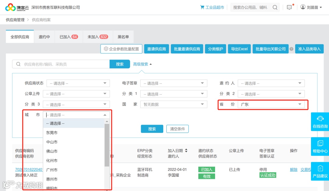 携客云平台会自动匹配供应商的地域,制造企业可按国内中高风险地区划分,快速筛选出受影响的供应商。无需被动