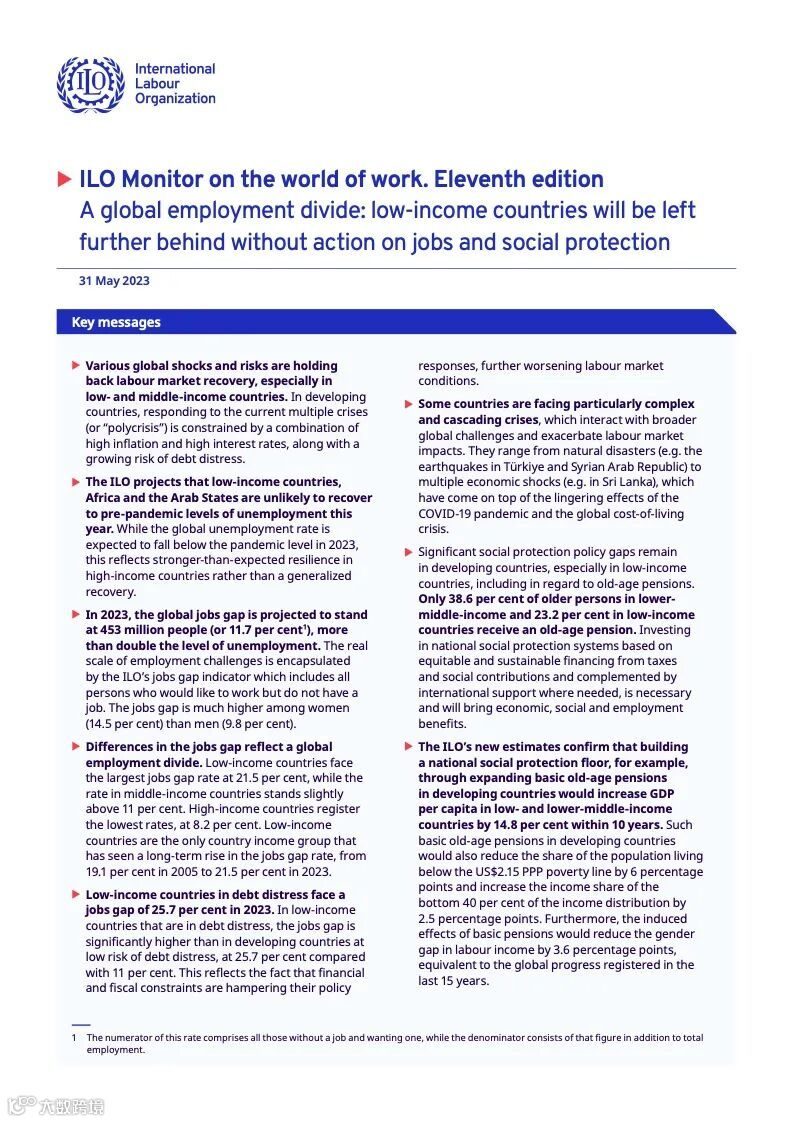 第11版国际劳工组织劳动世界监测报告 199IT互联网数据中心