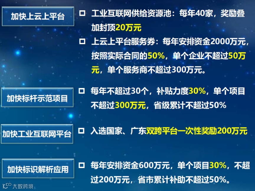 由佛山市工业和信息化局对《佛山市深化“互联网+先进制造”发展工业互联网的若干政策措施》进行深度解读。佛山将从工业企业上云上平台、工业互联网标杆示范项目建设、工业互联网标识解析建设及应用、工业互联网平台建设、工业互联网产业集群试点、工业互联网产业示范基地、工业互联网公共服务及公共创新服务载体等八个方向,对工业企业、工业互联网服务商、平台商、公共服务机构、创新载体等进行奖补。