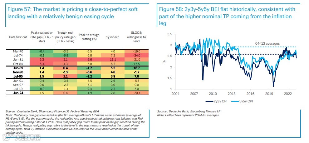 一种可能的情况是,即使在实现软着陆的前景存在重大不确定性的情况下,美联储也会表明继续进行量化紧缩(QT)的意图,并在降息时进行。只要这些沟通不会导致金融条件逆向收紧或不确定性增加(如2018-2019年那样),美联储将按照所示的方法执行,并保持灵活性以根据需要调整政策。在这种情况下,美联储将比平常更多地降低政策利率,从而导致利率曲线更陡峭。