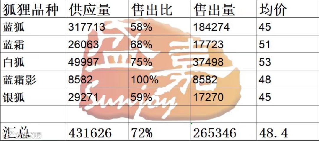 截至6月芬兰结束,各拍卖会总计供应约1500万张水貂皮,售出约1200万,售出比77%。