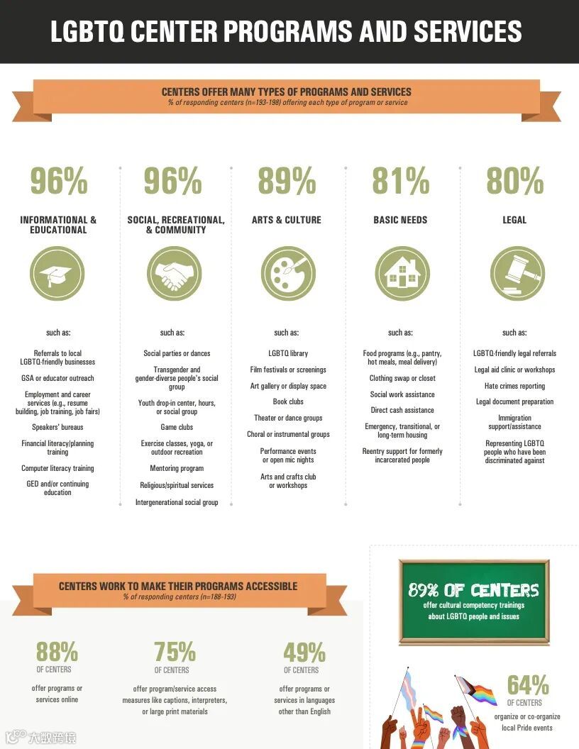 今年,该报告调查了位于 45 个州、哥伦比亚特区和波多黎各的 208 个中心,并提供了对为 LGBTQ 人群提供重要服务、计划和宣传的中心的重要概况。报告的主要发现包括: