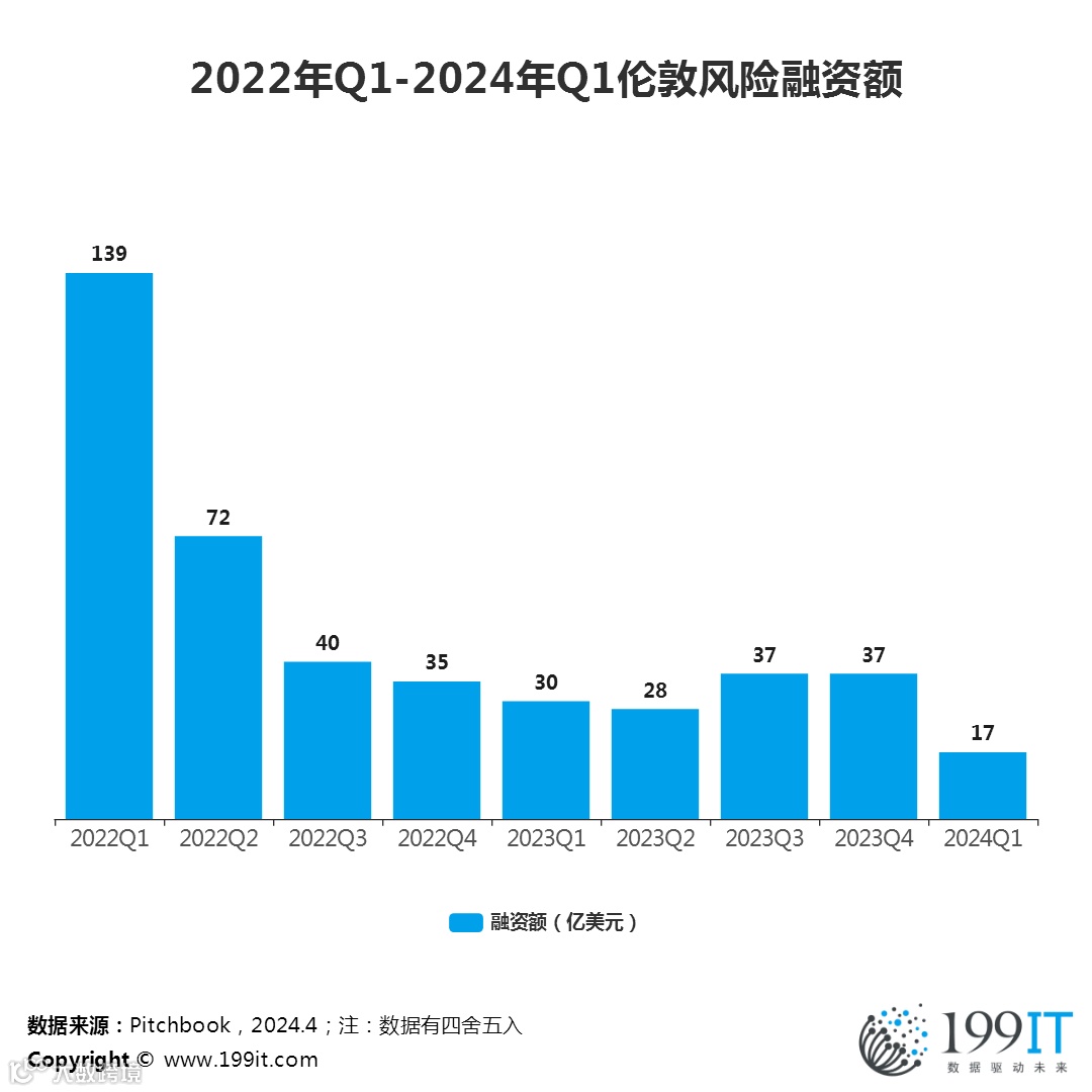 导读:2022年Q1-2024年Q1伦敦风险融资额