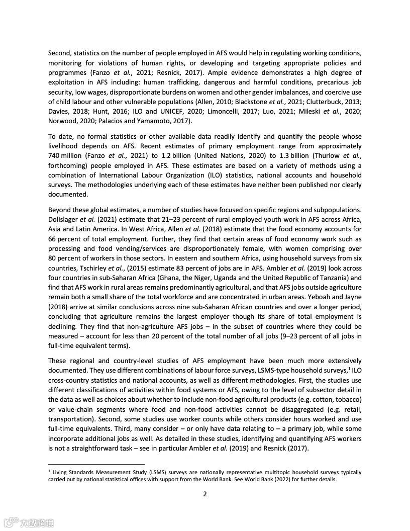 如果把相关的贸易和运输活动统计进来,农业粮食体系为非洲提供了62%的就业,在亚洲和美洲这一比例分别为40%和23%。