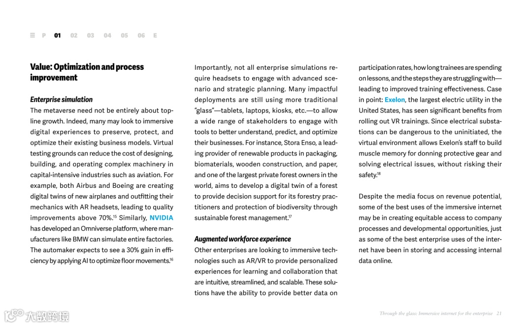 一代人与数字世界的联系一直是通过一系列不断缩小的矩形屏幕来实现的。 现在,随着技术专家认识到屏幕不可能永远缩小,范式再次发生转变,转向让用户透过屏幕进入沉浸式虚拟体验的界面,包括被称为元宇宙的数字世界。在接下来的几年里,有形的、对话的和虚拟的界面可能会继续从技术升级到玩具再到企业工具。 虽然一些公司围绕“无限现实”提供的独特能力建立有利可图的商业模式,但其他公司可以为员工提供沉浸式环境以简化操作或协作和学习。随着未来十年技术的进一步发展,企业应该准备好通过扩展与混合现实交互的方式将现实转移到网上。