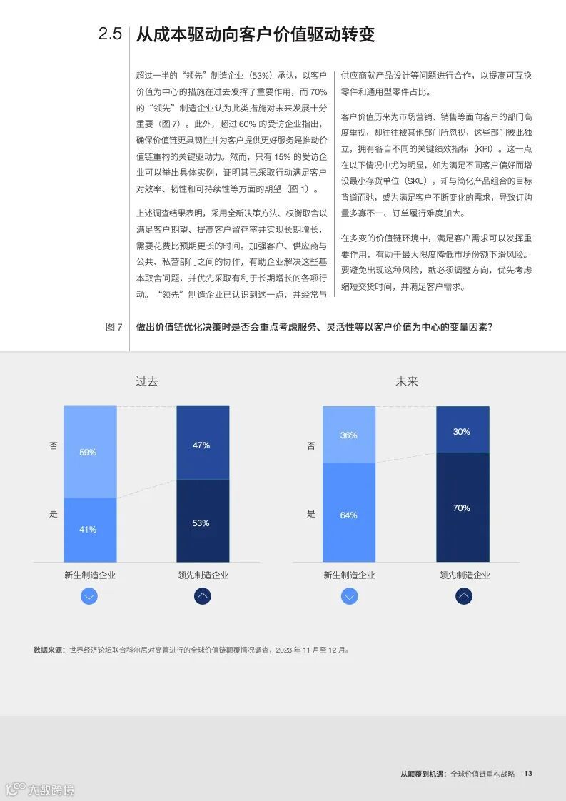 有鉴于此,世界经济论坛联合科尔尼对300 多位全 球运营高管进行了调查,并在之后开展了 30 多次 咨询访谈,以了解制造业和供应链参与者正在采取 哪些措施重新设计其价值链。