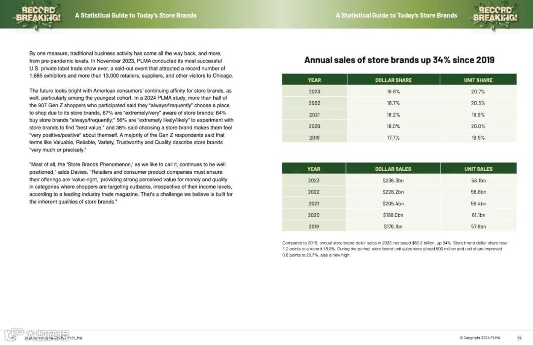 2023年商店自有品牌总销售额上升至2363亿美元,比去年增加了101亿美元,创下了又一个历史纪录,超过了去年创下的纪录。