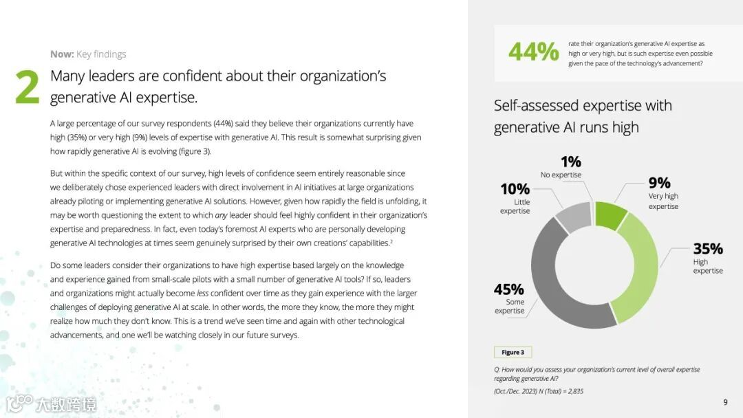 许多领导者对其组织的生成式人工智能专业知识充满信心。