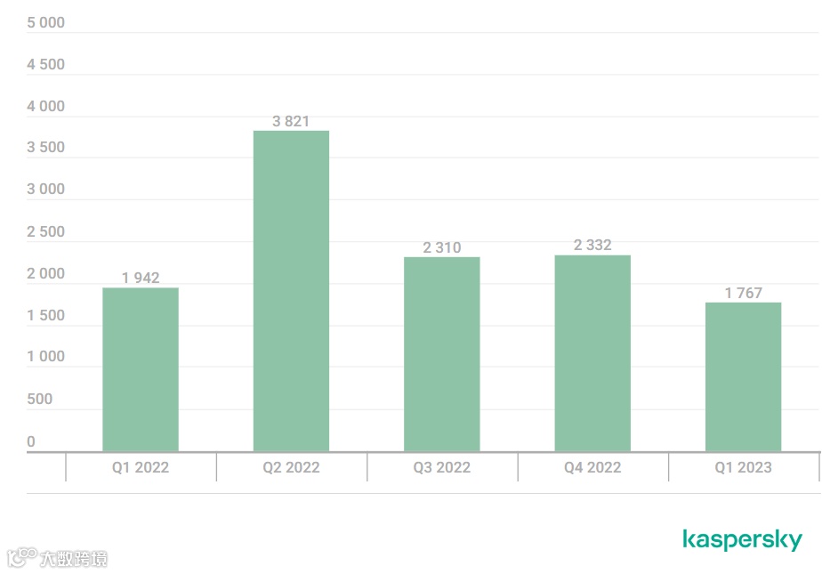 针对移动设备的恶意软件、广告软件和恶意软件攻击同比略有下降。卡巴斯基移动安全系统在2023年第一季度共挫败了490万次攻击。