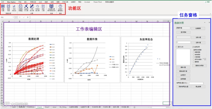 我们开发的可靠性数据分析插件基于Microsoft Excel,能够快速处理光电芯片及器件的老化数据,帮助用户便捷地进行分析和计算。插件可以生成外推寿命、失效时间、失效率和加速模型等关键参数。具备用户友好、低学习成本、图表化展示等优点。