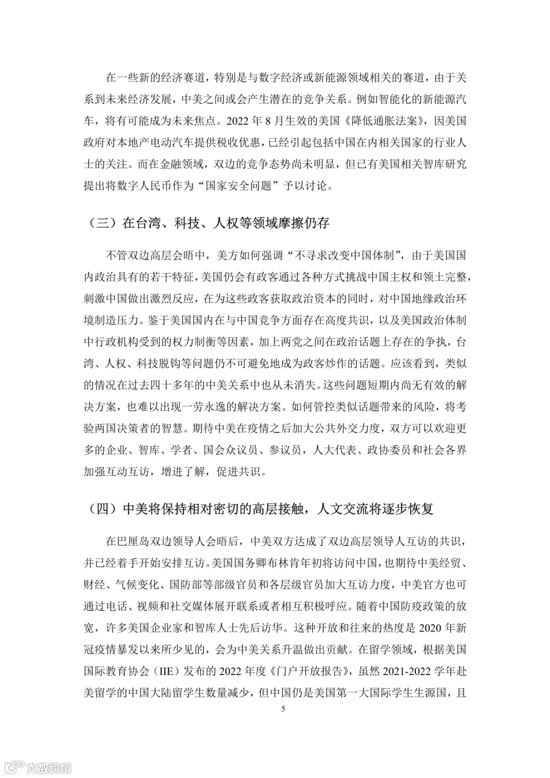 一、中美关系或迎来新的稳定窗口期;经过数年调整和布局,中美关系出现明朗迹象,或将达到一个历史新节点;双方仍将谨慎开展互动,在曲折中规避双边关系进一步下滑。