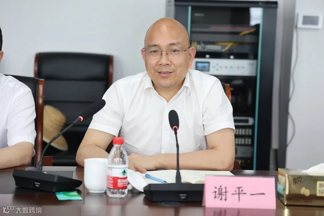 交流中,谢平一对头门港的发展情况、产业导向、发展趋势进行了介绍,并表示随着头门港的发展,港口服务业亟需引进,非常欢迎浙江省海港集团、宁波舟山港集团的港航服务业能参与头门港的开发建设,助推头门港的高质量发展。