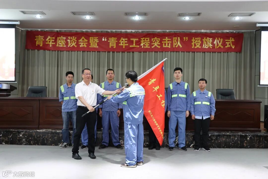 6月29日,头门港公司在五楼多功能厅举行青年座谈会暨“青年工程突击队”授旗仪式活动。公司党委书记、总经理张铁峰,党委副书记、纪委书记、工会主席蔡国栋,人力资源部及党群(监审)部负责人,公司45周岁以下员工参加了活动。