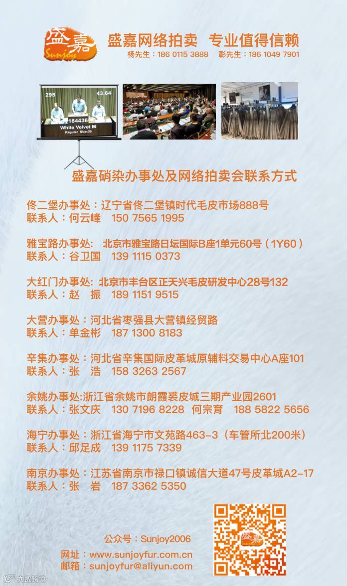 盛嘉硝染为客户提供买皮经纪、网络拍卖、硝制染色、代理进口等一站式服务,旗下三家工厂分别为:北京嘉祥工厂--硝制染色;浙江余姚创丰工厂--硝制染色;柬埔寨盛嘉工厂--毛皮硝制(免关税进口),是一家专注于服务的综合型公司。