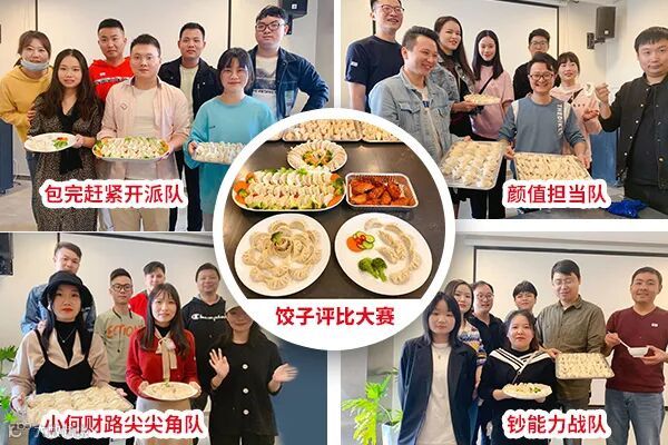 合照完毕,活动正式开始,所有小伙伴将分成四组,队员集合,进行包饺子大赛。随着主持人一声令下,小伙伴们便开始忙碌起来,洗菜的,剁馅的,准备调料的,大家忙得不可开交。小伙伴们积极发挥创造力和想象力,没过多久,各种造型的饺子开始摆盘,上锅。主持人和评委们依次对4组小伙们的成果进行试吃、点评。