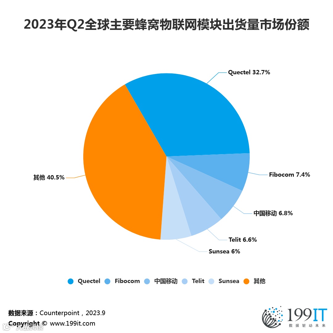导读:2023年Q2全球主要蜂窝物联网模块出货量市场份额
