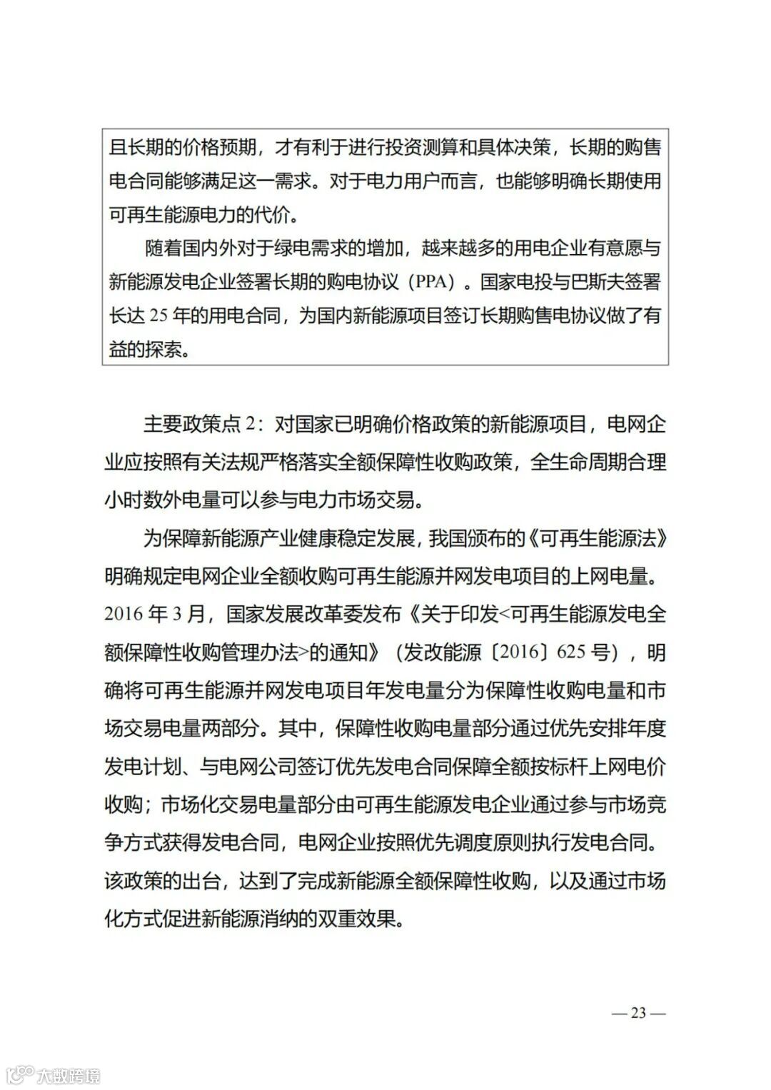 此外,对国家已明确价格政策的新能源项目,电网企业应按照有关法规严格落实全额保障性收购政策,全生命周期合理小时数外电量可以参与电力市场交易。