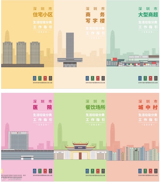 为指导生活垃圾分类投放与收集设施设置,推动构建科学合理、简便易行的分类投放体系,深圳市城市管理和综合执法局组织编制了学校、工业园、酒店、农贸市场、机关事业单位、公园景区、医院、餐饮场所、城中村、住宅区、商务写字楼、大型商超12 类场所的生活垃圾分类投放工作指引。