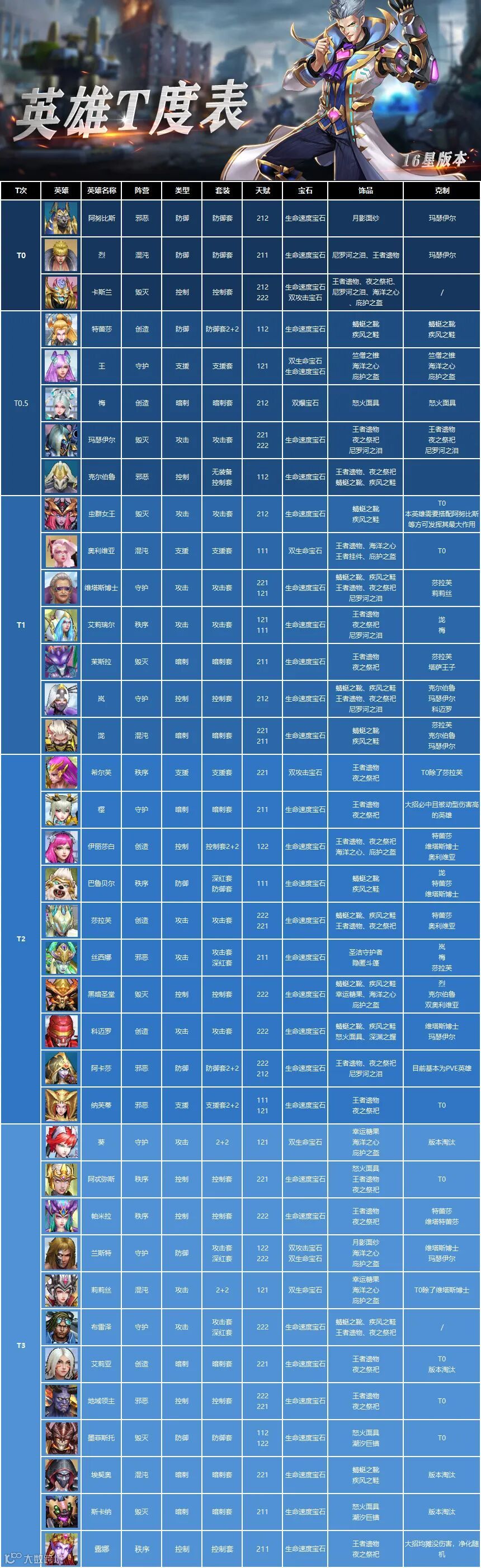 今天给大家带来了新鲜滚烫的16星英雄T度表~
