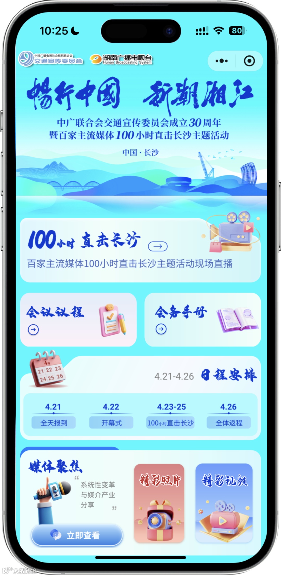 ▸ 会中:电子签到、个人参会中心、日程查询、座位查询、车辆与住宿查询、图片直播、视频直播、视频集锦、新闻动态、AI智会助手、企业专属空间