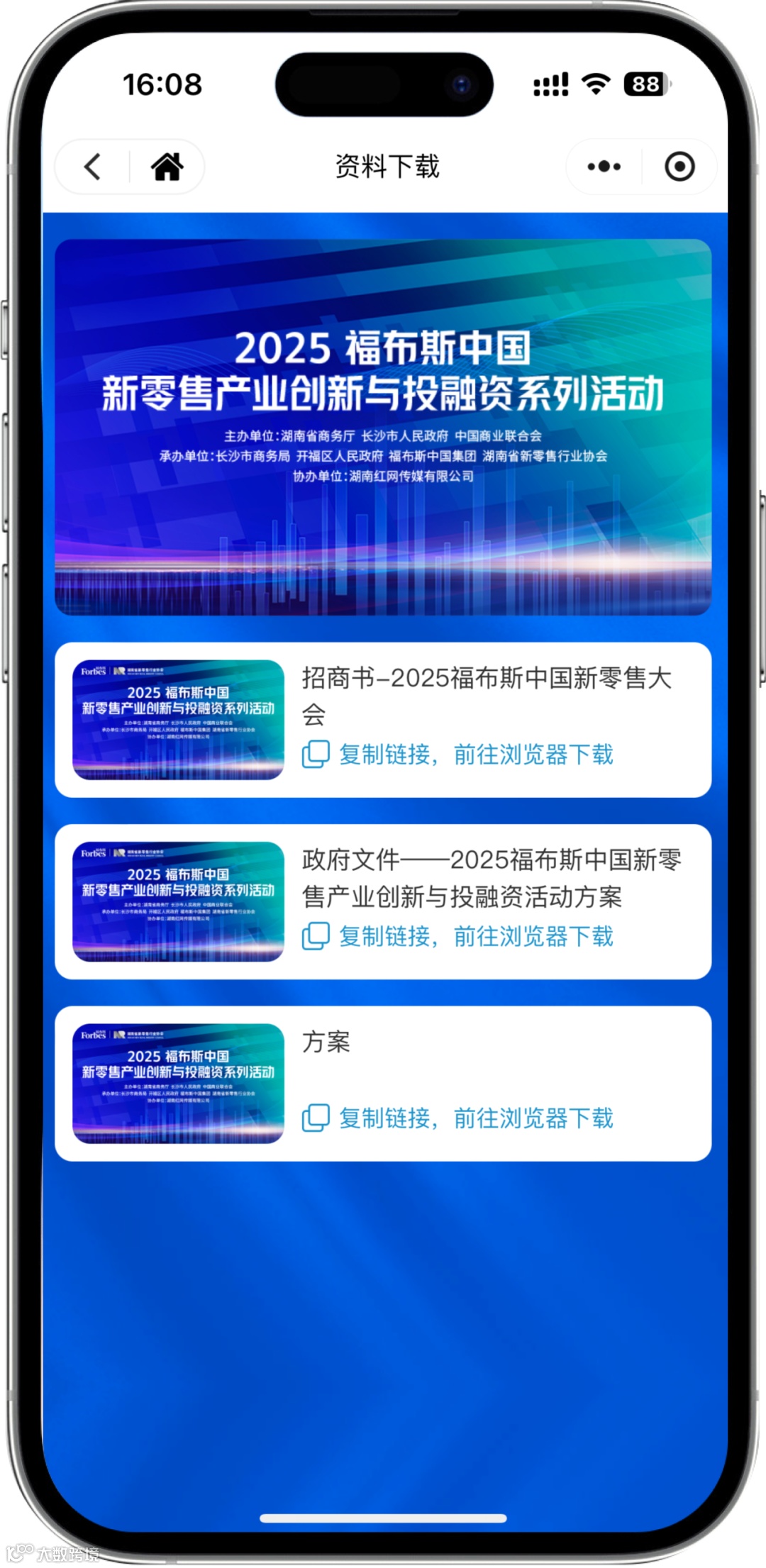 参会者只需一个小程序,即可获取全部会议信息——从日程导航到直播观看,从资料下载到座位查询,彻底告别纸质材料堆积。