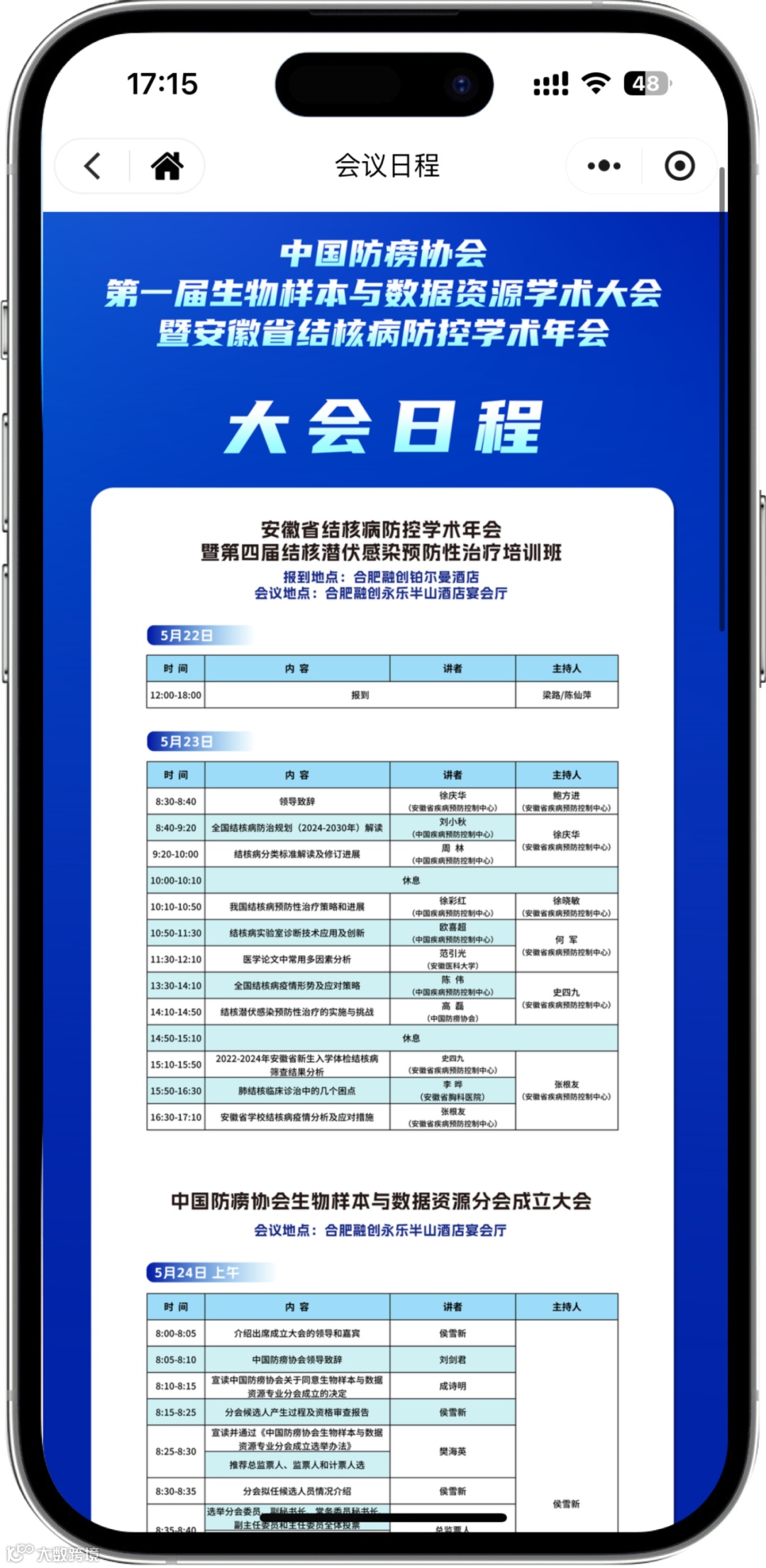 2025年5月23日至25日,由中国防痨协会主办,安徽省防痨协会、安徽省疾病预防控制中心共同承办的“第一届生物样本与数据资源学术大会暨安徽省结核病防控学术年会”在安徽合肥顺利举行。