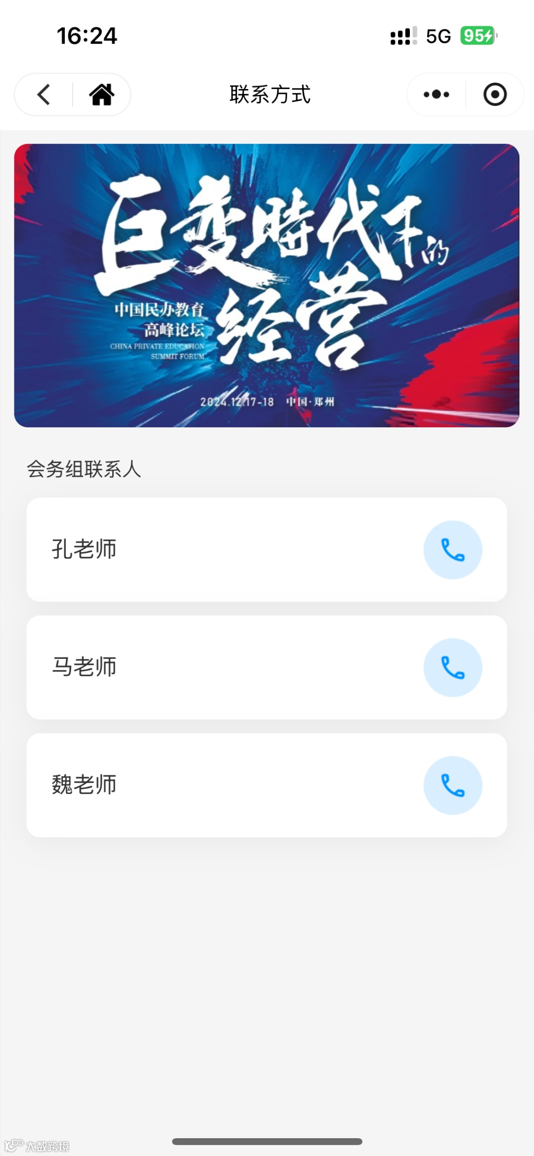 小程序里的一键联系功能,让参会者随时与会务组织方取得联系,方便快捷。