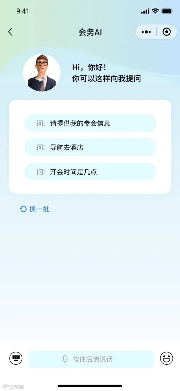 此外,AI聊天机器人可作为与会者的虚拟助手,提供7天*24小时的咨询服务,解答与会务相关的问题,如议程详情、交通信息等,从而减轻工作人员的负担。