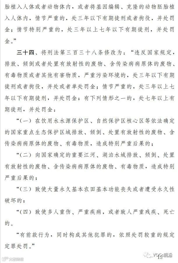 刑法修正案(十一)(草案二次审议稿)第三十四条,与污染环境等相关,内容如下所示: