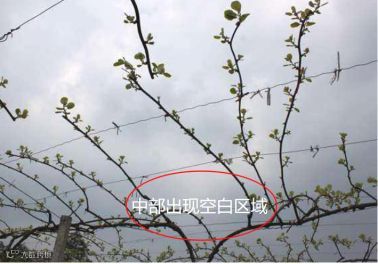 如果第一年主干没有长足,冬季修剪时将主干枝剪留3~4个饱满芽,第二年春季从萌发的新梢中选择一个长势最强旺枝作为主干再培养,其余新梢疏除。