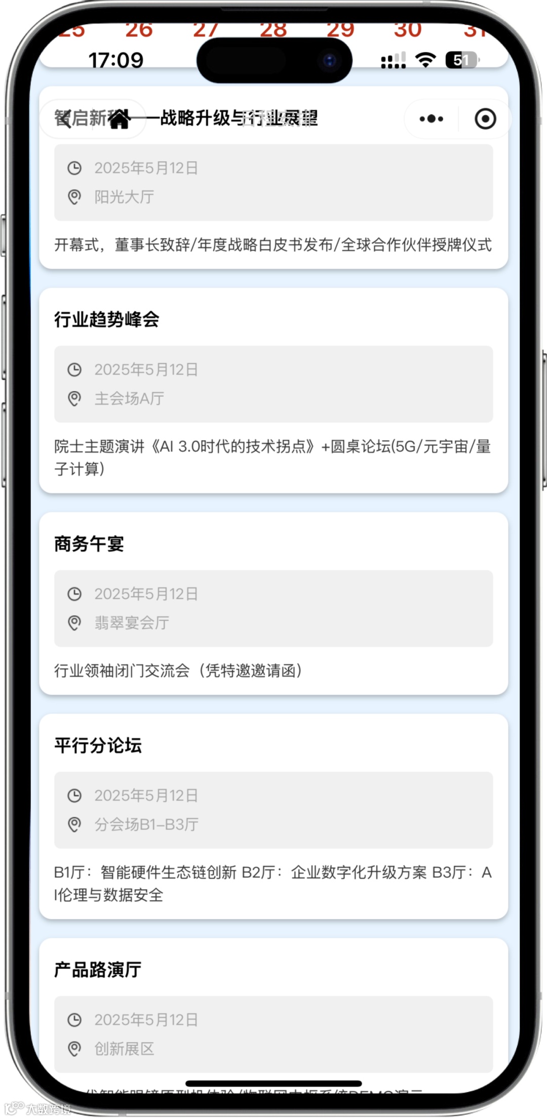 所有的资料、日程、通知、直播,都汇聚于掌心。这是一种优雅且环保的现代会议美学。