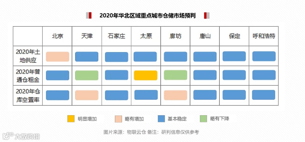 其中北京相比前两年增加了10公顷的工矿仓储用地供应,现已有130公顷的工矿仓储用地;天津仍居华北地区首位,提供了1000公顷的工矿仓储用地,且普通仓的租金会略有下降,唐山、保定、石家庄和呼和浩特仓储用地供应以及租金和空置率基本保持稳定,太原普通仓租金有明显提升(太原仓储用地供应持续低位),以上预判内容仅供参考。