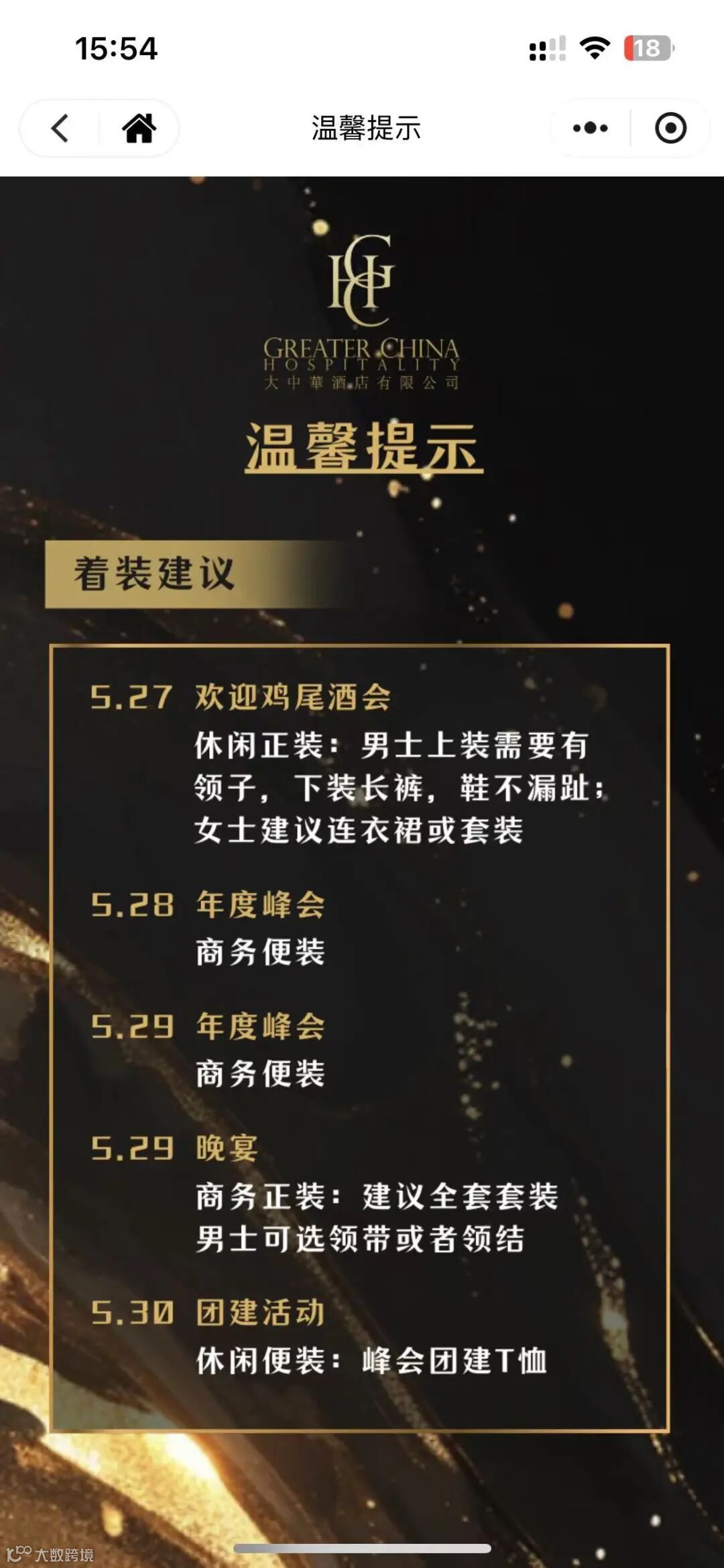 会议期间,小程序会发布各种温馨提示,包括活动安排、集合地点、着装建议、注意事项、需要携带的物品、负责人联系方式等,让参会者感受到无微不至的关怀。
