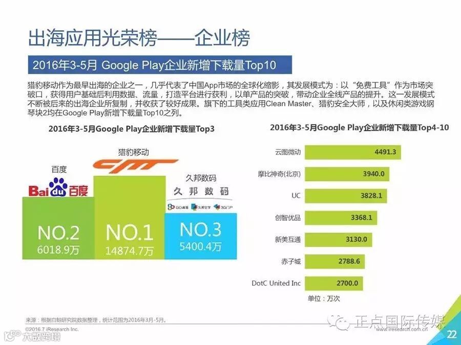 正点小编分享出海移动应用盘点报告《2016年中国出海移动应用发展盘点报告》,该报告深入分析了中国出海移动应用的发展背景、发展现状及收入状况。同时分析了不同地区用户对产品的偏好和习惯,为出海企业及投资者提供参考。