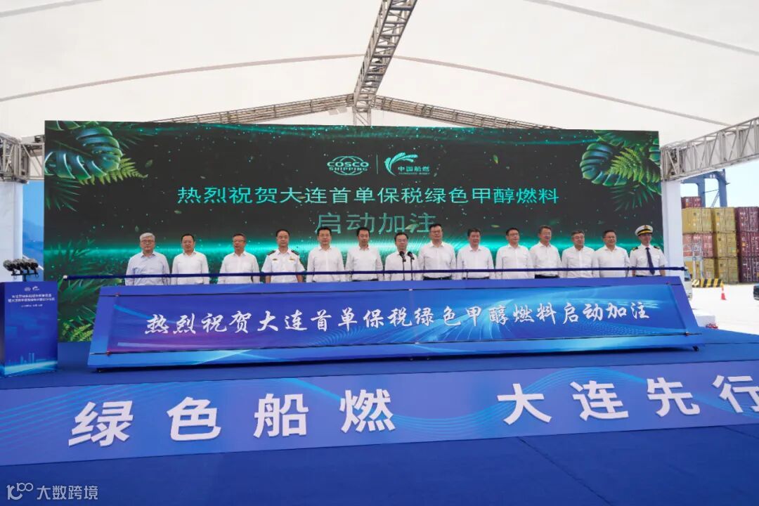 此次加注是中国东北地区首次为我国自主研发制造的甲醇动力远洋船舶加注经国际组织认证的国产绿色甲醇,对于加快大连市打造东北亚绿色船燃加注中心也具有示范作用。为见证此次重要时刻,中远海运东北区域总部、中国船燃和大连市人民政府于7月15日在大连港联合举办了“东北亚绿色船燃供应链首次贯通暨首单绿色甲醇保税加注仪式”。辽宁省政府党组成员吴春耕,中国远洋海运集团有限公司副总经理张峰,大连市委副书记,金普新区党工委书记、大连自贸片区党委书记刘恩举,省政府副秘书长孙伟、省交通厅厅长冯万斌及海关、海事、税务、边检、船级社等中直单位,金普新区、长兴岛经济技术开发区等有关领导出席活动,中国船燃总经理秦岭主持加注仪式。