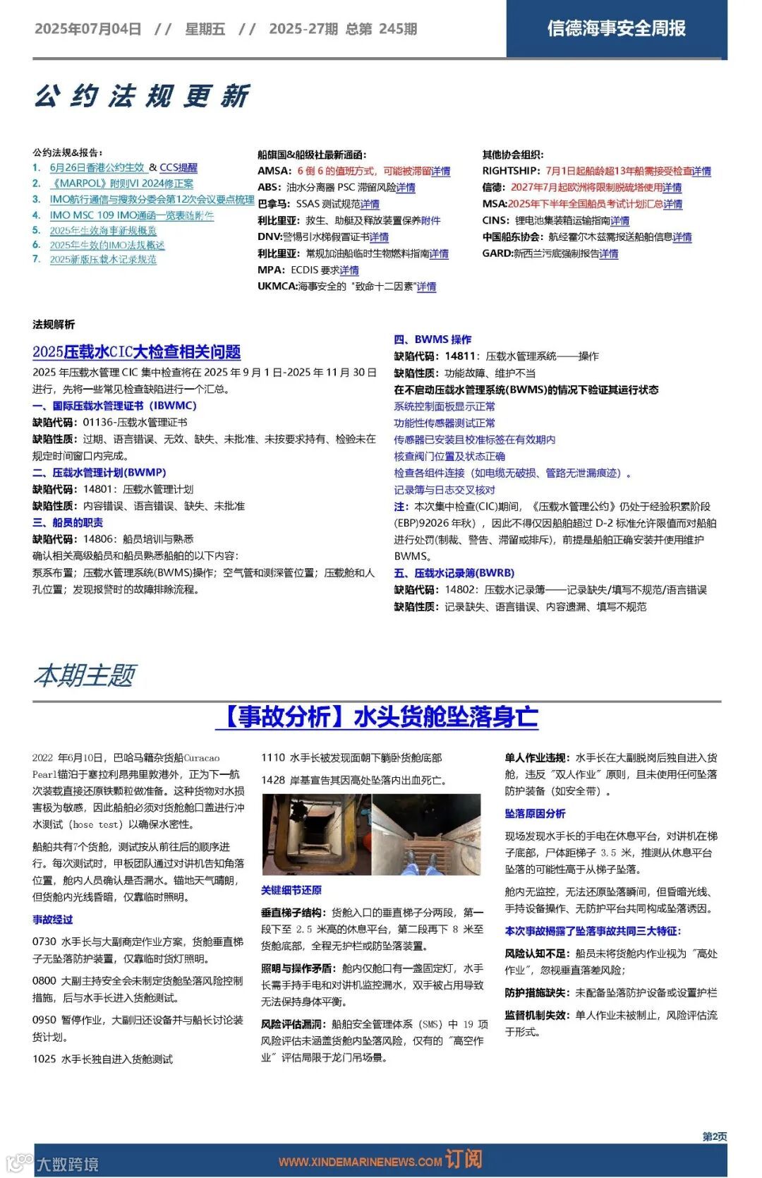 信德海事一直把实现海上更安全当作我们的愿景之一。2020年8月22日正式推出《信德海事安全周报》,2021年1月,《信德海事安全月报》上线,2021年2月,《信德海事安全指南》上线。如有船公司需订阅以上产品,请发送邮件:safety@xindemarine.com,或联系主编:18641784019。