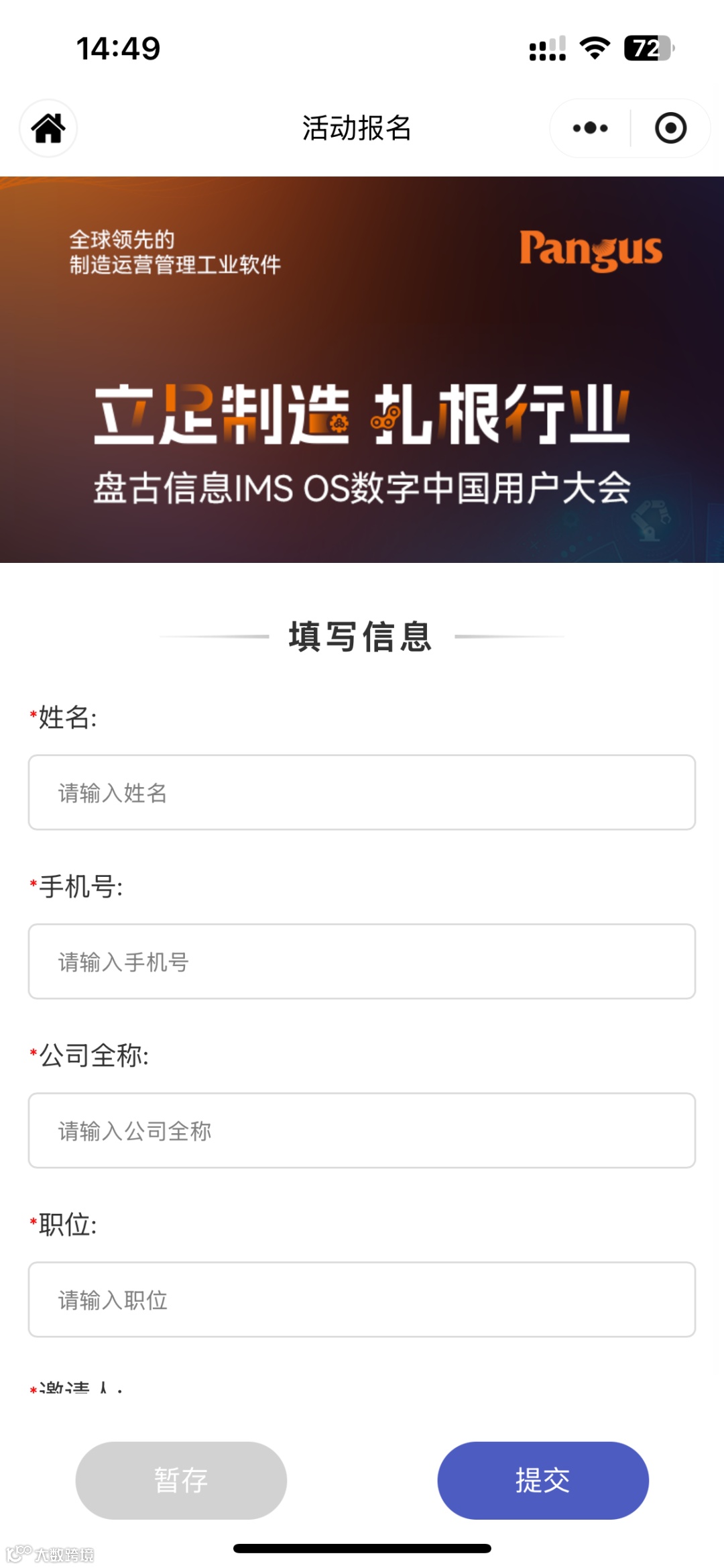 盘古信息IMS OS数字中国用户大会的成功举办,不仅展示了制造业数字化转型的最新成果,也为行业的未来发展指明了方向。通过智慧会务小程序的应用,大会实现了高效、智能化的管理,提升了参会者的体验。您也快来试试吧!